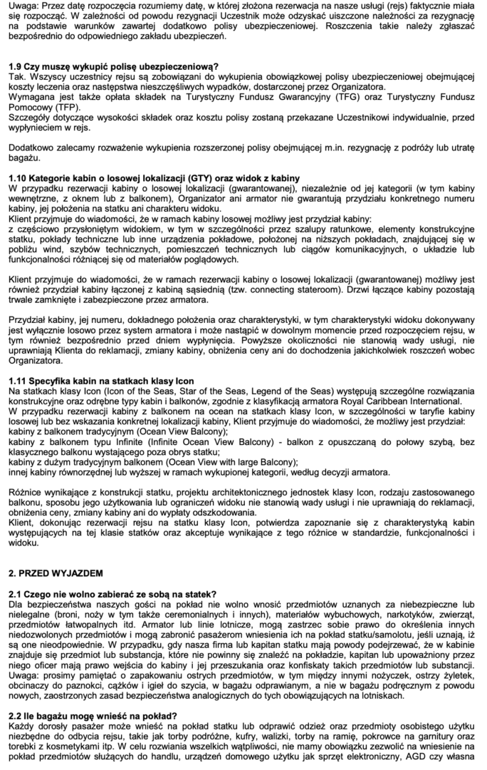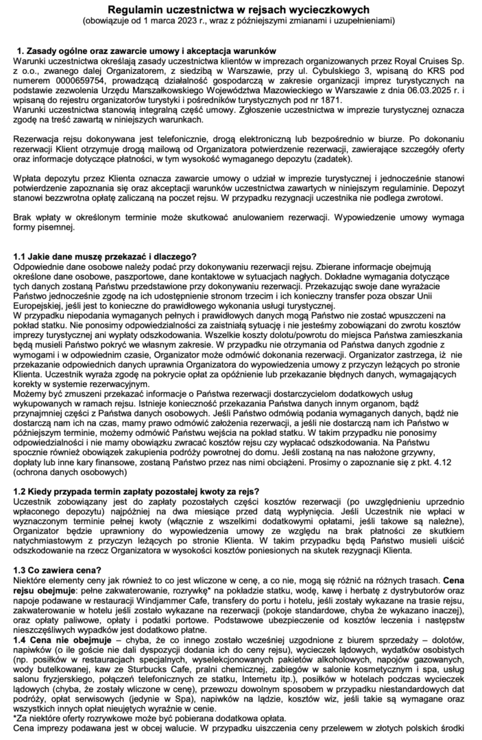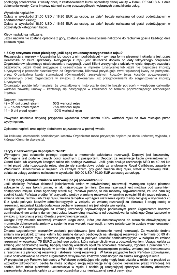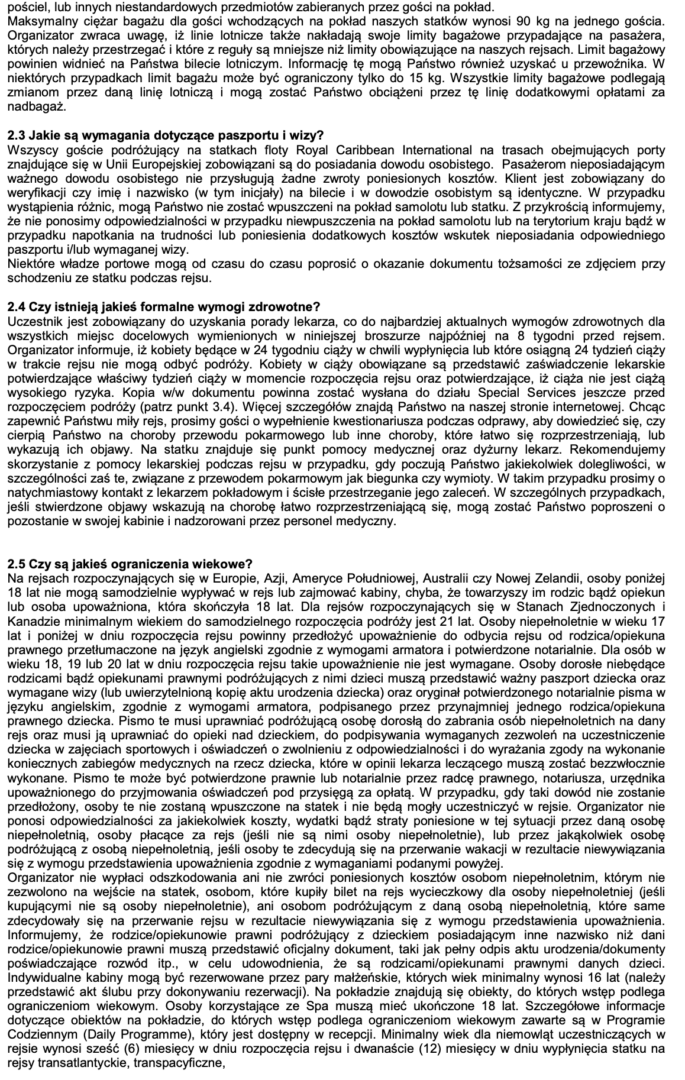 REGULAMIN RESJÓW ROYAL CARIBBEAN