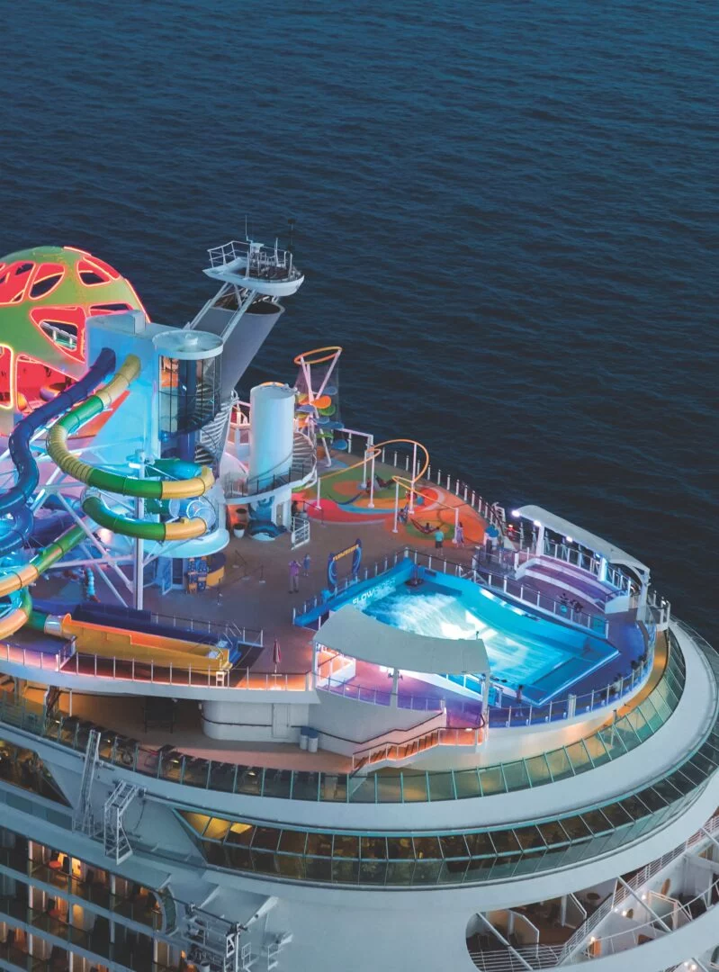 Na Marinerze znajdziecie 15 pokładów, zapełnionych eleganckimi kabinami. Wśród rozrywek czeka Cię np. 60 metrów ścianki wspinaczkowej, wodny park Adventure Beach czy kryte lodowiska i Panorama Królewska pełna restauracji, kafejek i pubów.